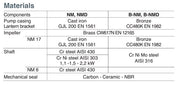 - Mechanical seal: Carbon- Ceramic- NBR.
